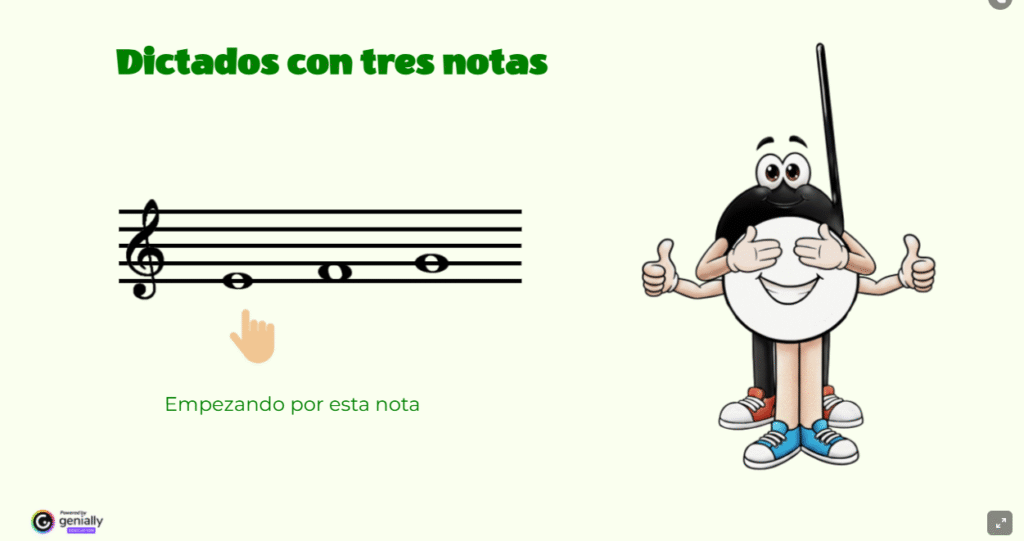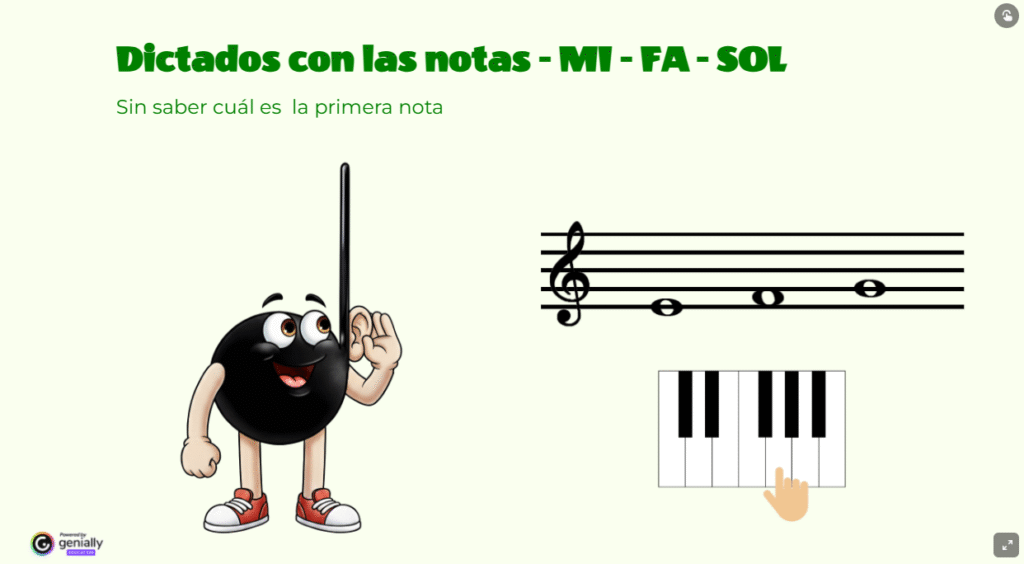 Reconoce estas cuatro notas en series de 5 sonidos, partiendo de una nota conocida. Hay un apartado en el que