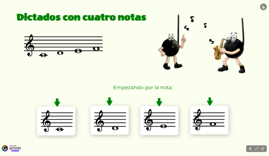 Reconoce estas 4 notas en series de 5 sonidos, partiendo de una nota conocida, que eliges tu.