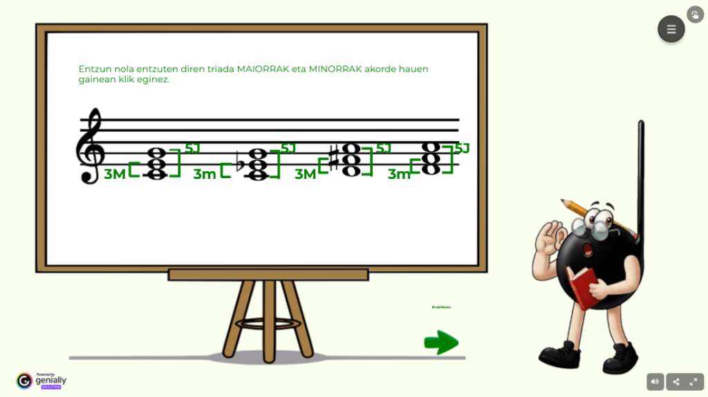 Identifikatu triada maiorrak eta minorrak triada bakoitza bere izenarekin parekatzen ariketa honetan.