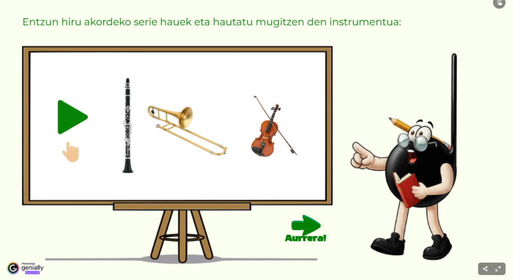 Entzun pasahitza honetako soinuak eta asmatu zer instrumentuak diren.Kontuz! Agertzen den izkia batzutan hasierakoa da eta beste batzutan ordez hitzaren