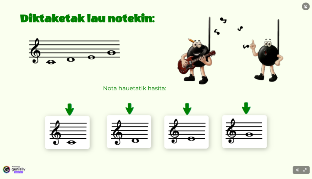 Entzun audio-zatia gezian klik eginez eta ondoren, egin klik konpasetan, entzun dituzun ordena berean. Entzun eta gelditu dezakezu audioa gezi […]