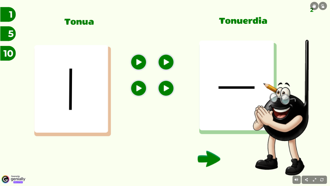 Entzun audio-zatia gezian klik eginez eta ondoren, egin klik konpasetan, entzun dituzun ordena berean. Entzun eta gelditu dezakezu audioa gezi