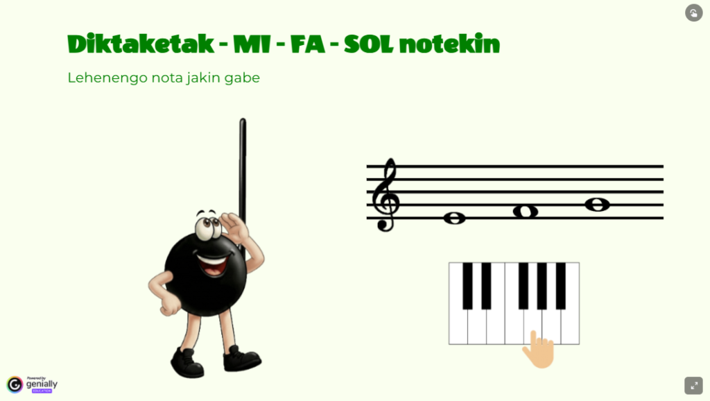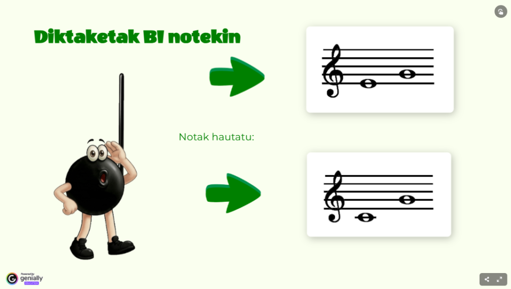 Lau soinuko segidak entzun behar dira eta gero notak eraman doakien lekuetara pentagraman.