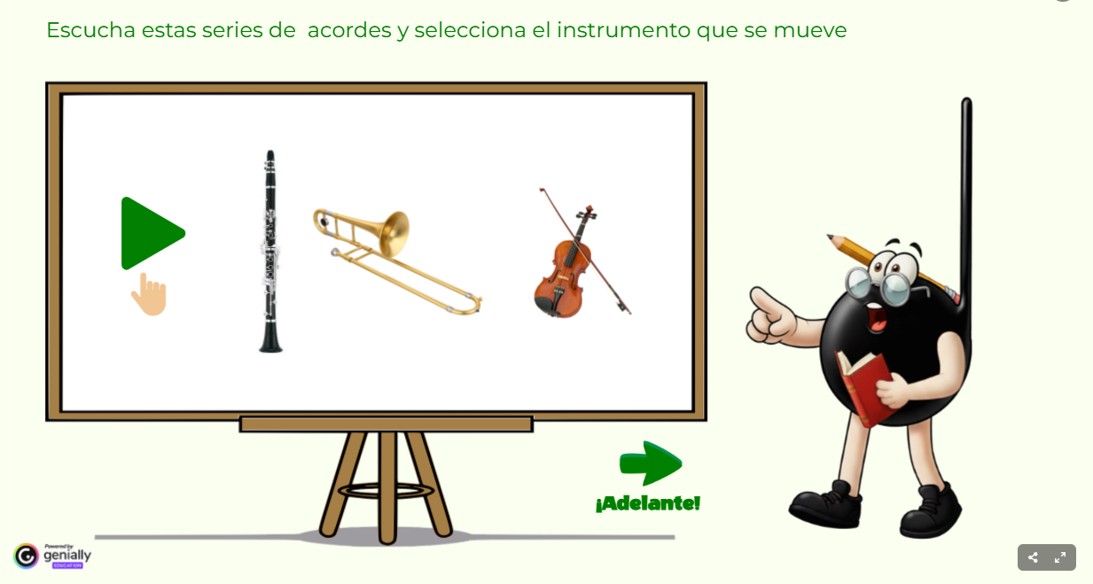 Al hacer clic sobre la flecha inferior oirás dos acordes. Selecciona los instrumentos que tocan el segundo acorde: